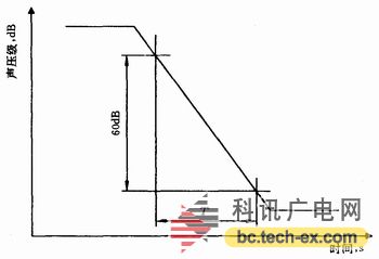 混響時間反映了室內聲能的衰變快慢,它是由100多年前美國物理學家賽賓提出的,指的是當聲源在房間內停止發(fā)聲后,殘余聲能在房間內往復反射,其密度衰變60dB所需的時間,如圖1所示。我們可以通過賽賓公式