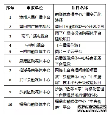 福建省廣播電視媒體融合發(fā)展專項(xiàng)扶持項(xiàng)目名單