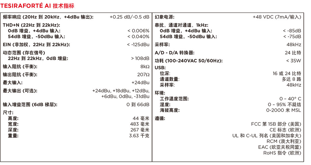 TesiraFORTé? AI是一款固定的I/O DSP,配備12路模擬輸入和8路模擬輸出,并包含多達(dá)8路可配置USB音頻通道。借助USB音頻,TesiraFORTé直接與USB音頻主機(jī)連接,并可充分利用當(dāng)今最先進(jìn)的會(huì)議解決方案。TesiraFORTéAI還提供了廣泛的音頻處理,包括但不限于:信號(hào)路由和混音、均衡、濾波、動(dòng)態(tài)和延遲以及控制、監(jiān)控和診斷工具,均通過(guò)Tesira軟件配置。TesiraFORTé AI是中小型房間的最佳選擇,這類房間需要使用語(yǔ)言擴(kuò)聲和分區(qū)擴(kuò)聲的高品質(zhì)音頻解決方案(如會(huì)議室或理事會(huì)會(huì)議廳)。