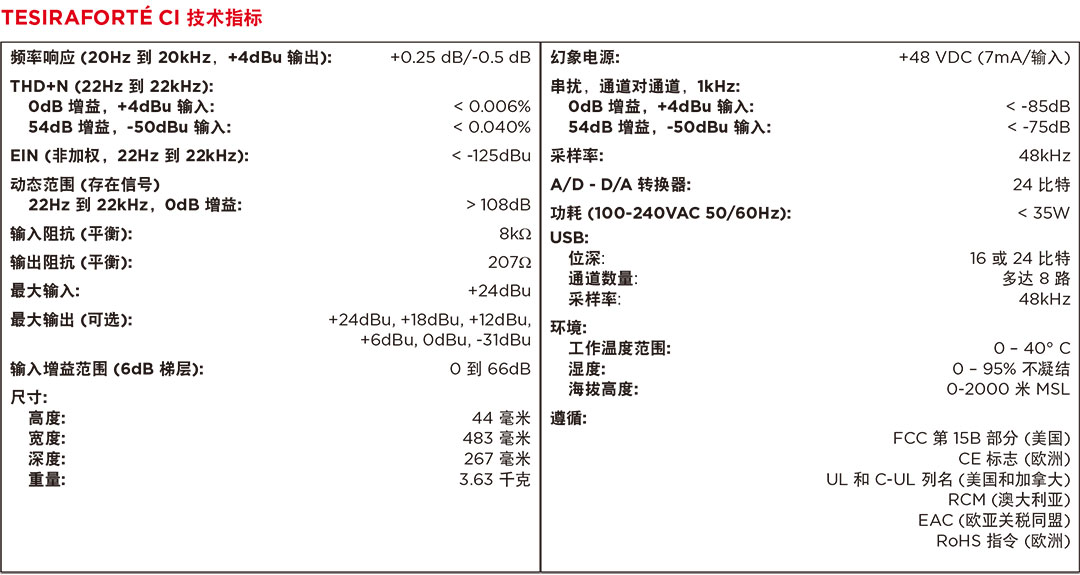 TesiraFORTé? CI是一款固定的I/O DSP,配備12路支持回聲消除(AEC)的模擬輸入和8路模擬輸出,并包含多達(dá)8路可配置USB音頻通道。借助USB音頻,TesiraFORTé直接與USB音頻主機(jī)連接,并可充分利用當(dāng)今最先進(jìn)的會(huì)議解決方案。TesiraFORTé CI還提供了廣泛的音頻處理,包括但不限于:信號(hào)路由和混音、均衡、濾波、動(dòng)態(tài)和延遲以及控制、監(jiān)控和診斷工具,均通過(guò)Tesira軟件配置。TesiraFORTé CI是中小型房間的最佳選擇,這類房間需要使用語(yǔ)言擴(kuò)聲和分區(qū)擴(kuò)聲的高品質(zhì)音頻解決方案(如會(huì)議室或理事會(huì)會(huì)議廳)。